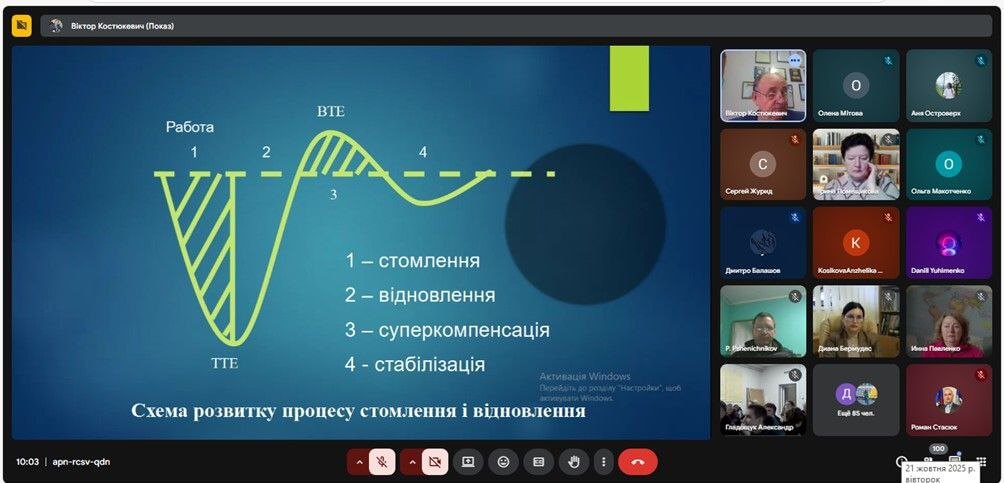 21.10.2025 року здобувачі освіти спеціальності 017 Фізична культура і спорт відвідали відкриту гостьову лекцію від Віктора Митрофановича КОСТЮКЕВИЧА — професора, доктора наук з фізичного виховання і спорту, заслуженого тренера України, професора кафедри теорії і методики спорту Вінницького державного педагогічного університету імені Михайла Коцюбинського на тему: «Тренувальні програми розвитку та вдосконалення рухових здібностей спортсменів». Лекція була організована колективом Навчально-наукового інституту “Придніпровська державна академія фізичної культури і спорту” Українського державного університету науки і технологій. Дякуємо за надану нагоду отримати фундаментальні знання для подальшого професійного розвитку!!!
