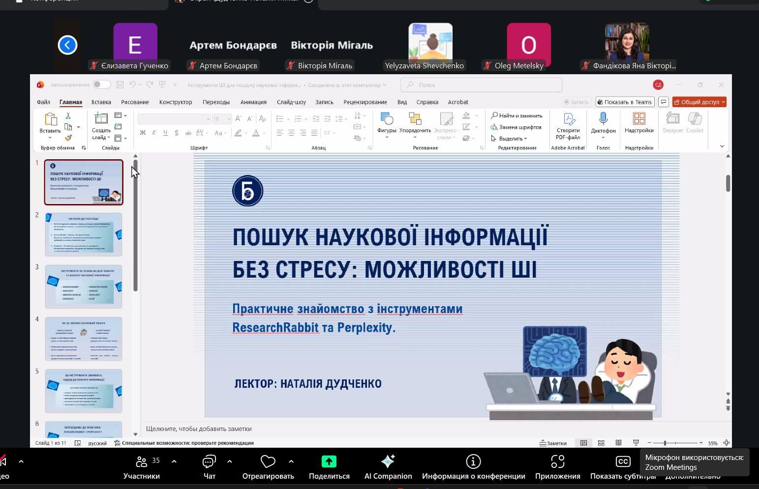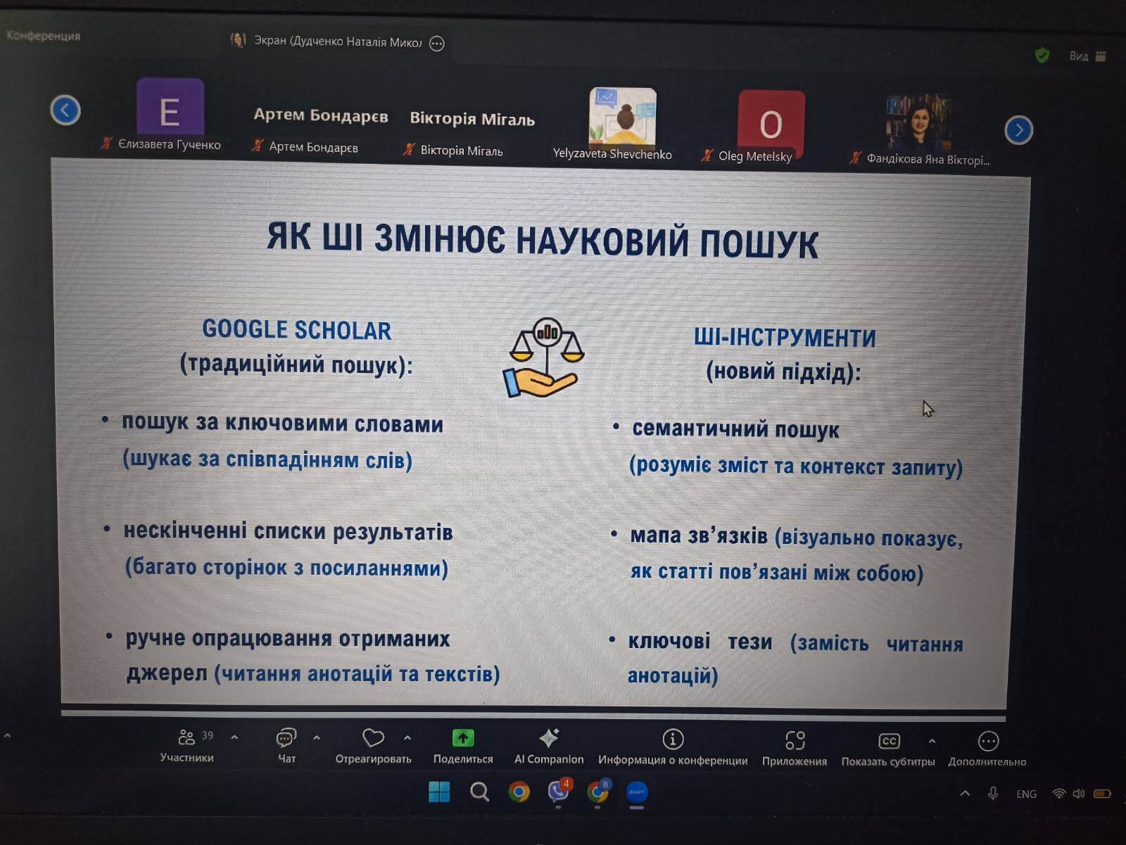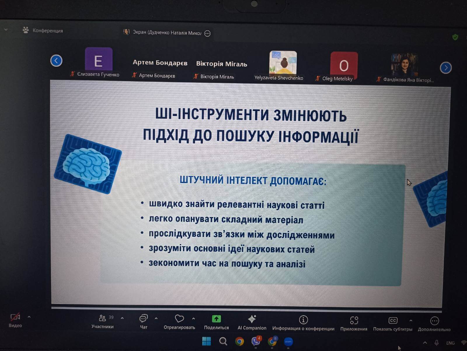 25 лютого студенти і аспіранти спеціальності А7 Фізична культура і спорт долучилися до вебінару “Пошук наукової інформації без стресу: можливості ШІ”, який було організовано бібліотекою СумДУ.
