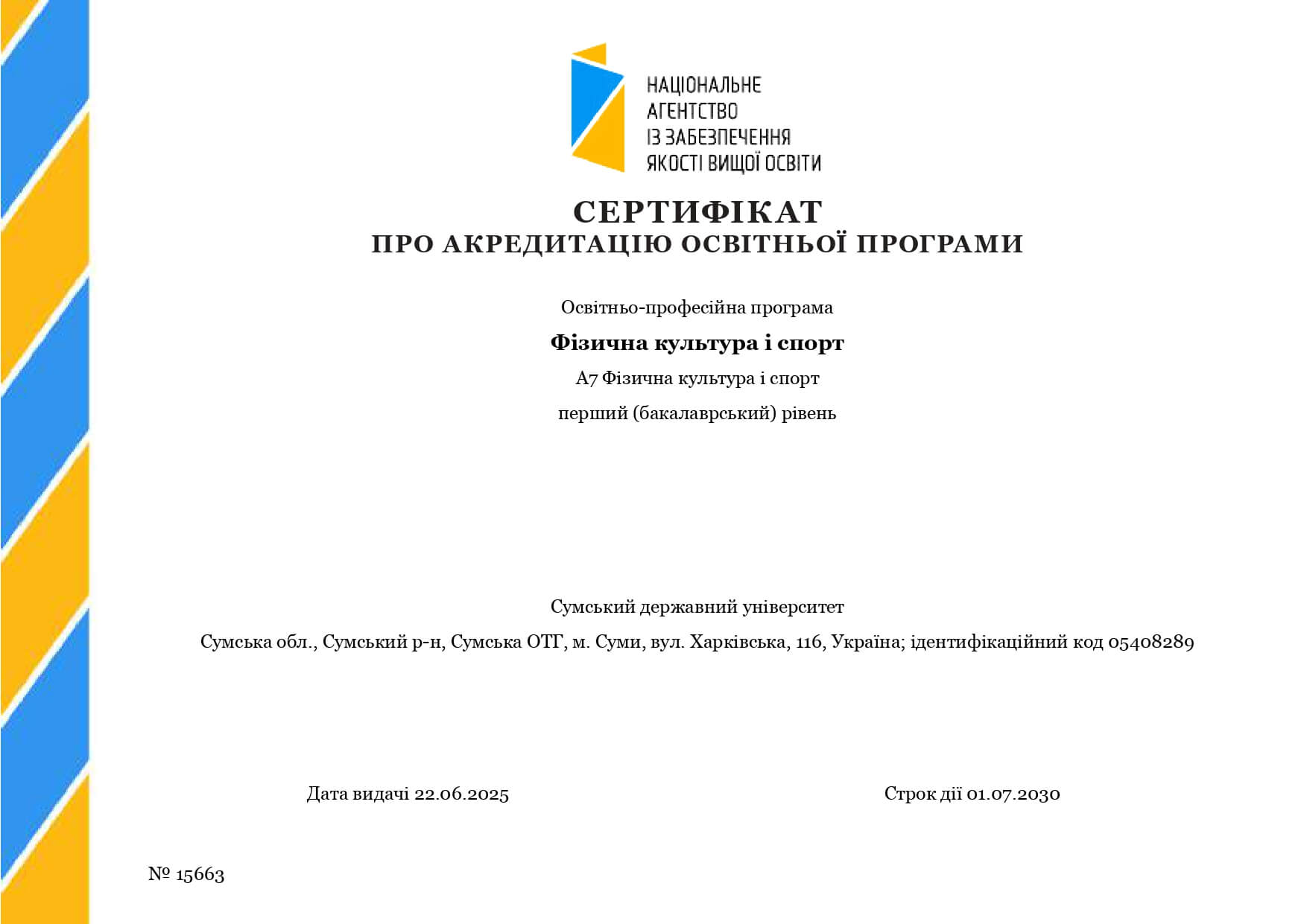 ОПП А7 “Фізична культура і спорт” за першим (бакалаврським) рівнем вищої освіти 2025 р.